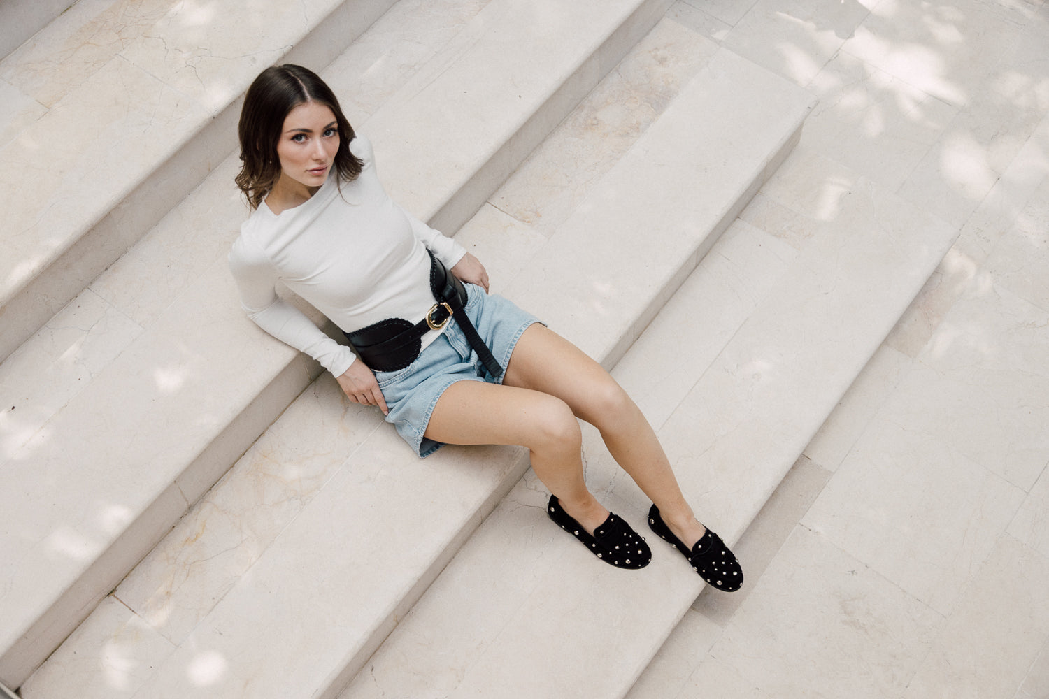 Mocasín en carnaza color negro. Accesorios plateados en acero inoxidable.